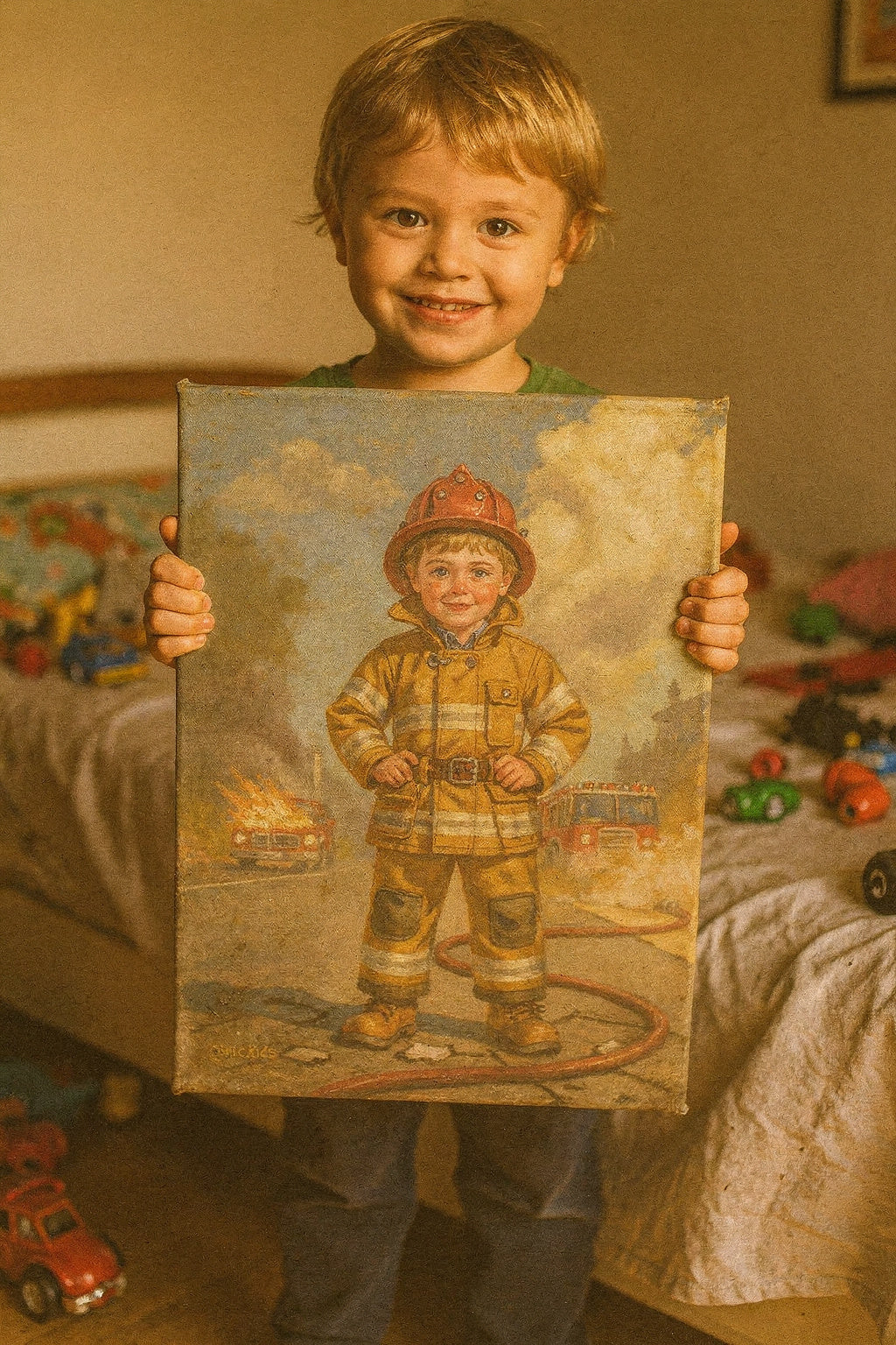 Zoek je een cadeau dat écht persoonlijk is? Onze ontwerpstudio plaatst het kind in zijn/haar droomwereld. Zo geef je geen speelgoed dat verdwijnt in de kast, maar een premium canvas dat een vaste plek krijgt in de kinderkamer (en in het hoofd).