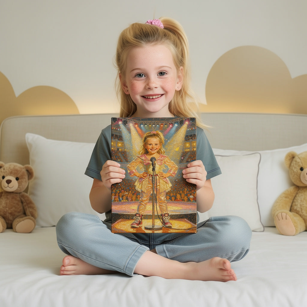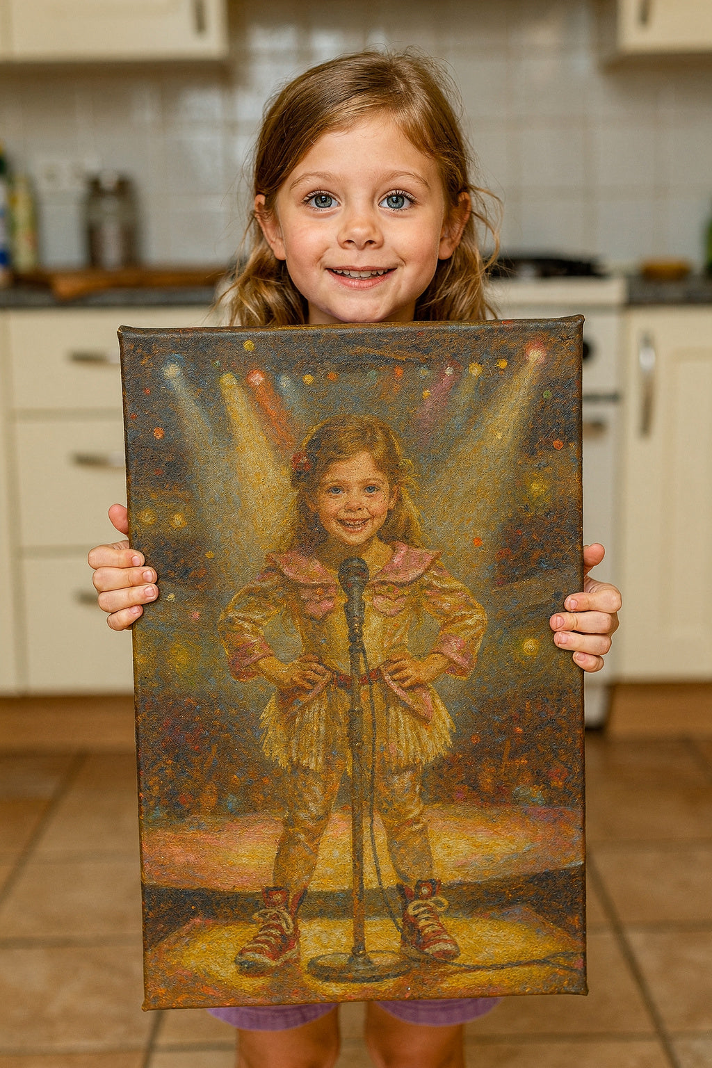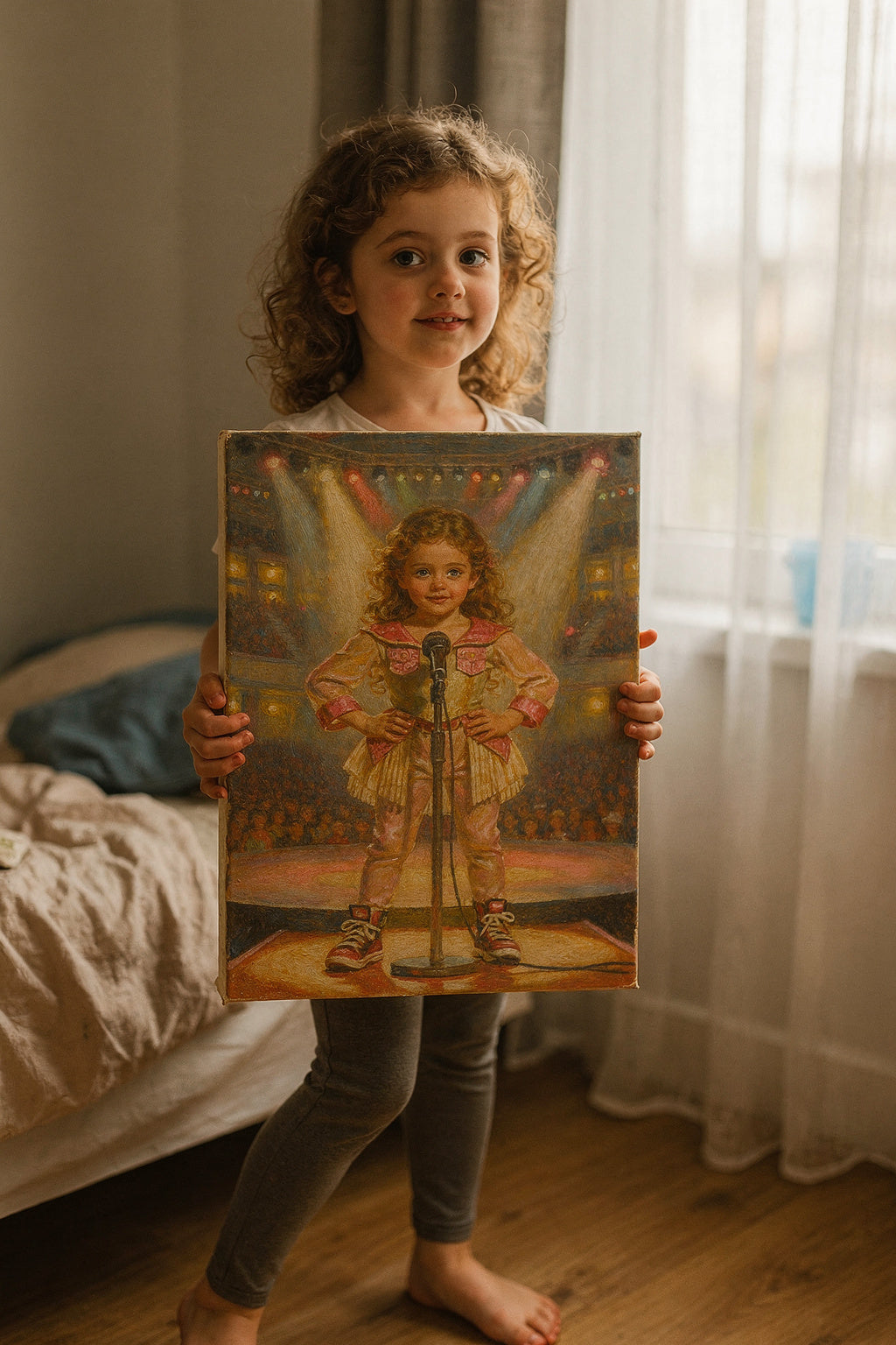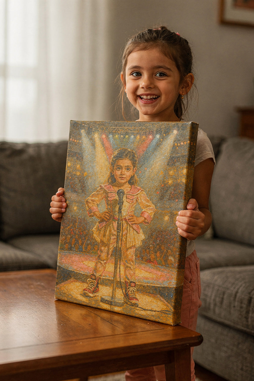 Zoek je een cadeau dat écht persoonlijk is? Onze ontwerpstudio plaatst het kind in zijn/haar droomwereld. Zo geef je geen speelgoed dat verdwijnt in de kast, maar een premium canvas dat een vaste plek krijgt in de kinderkamer (en in het hoofd).